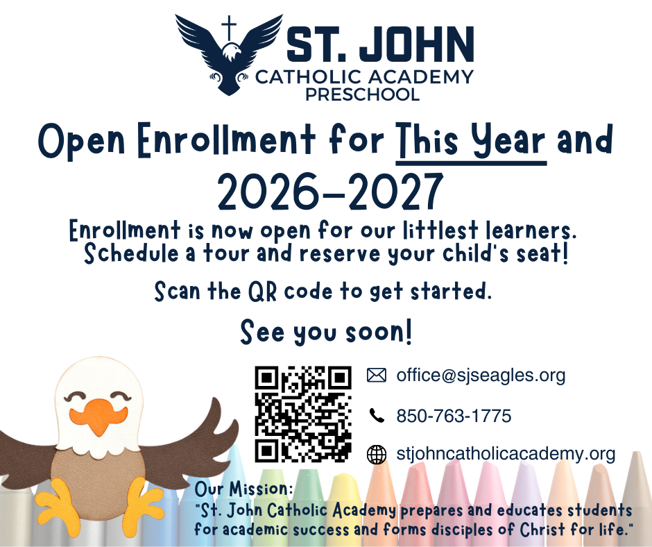 Non-Discriminatory Notice: It is the policy of the Diocese of Pensacola-Tallahassee to admit students of any race, disability, color, sex, national and ethnic origin to all the rights, privileges, programs, and activities generally accorded or made available to students at the school. We do not discriminate on the basis of race, disability, color, sex, national and ethnic origin in administration of educational policies, and athletic and other school administered programs.