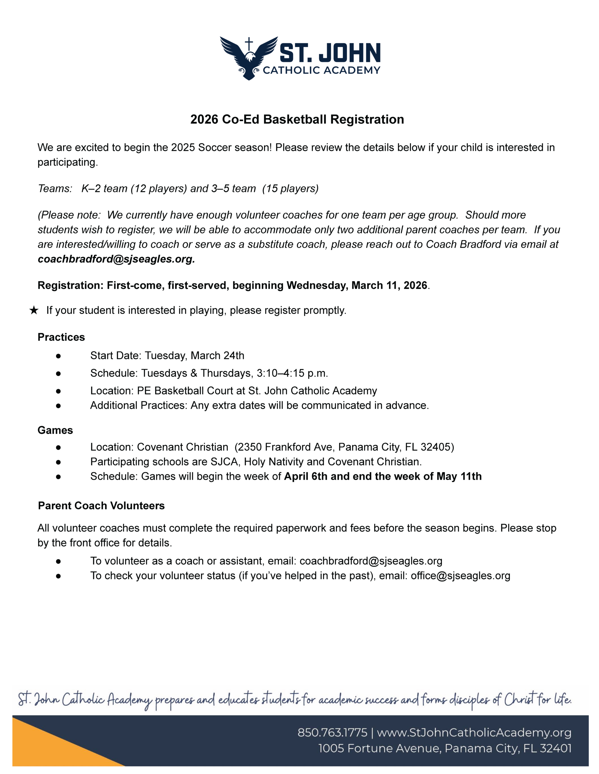 SJCA 2026 Co-Ed Basketball Registration